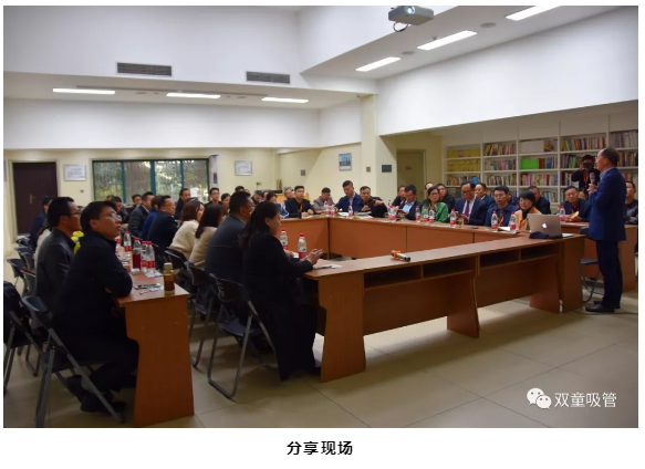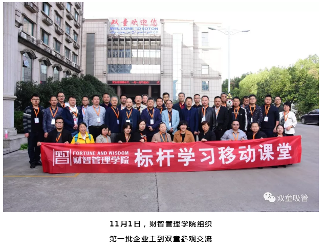 11月19日下午,江西財智管理學(xué)院的近60位企業(yè)主來到“雙童”參觀交流。這已經(jīng)是江西財智管理學(xué)院團隊第二次走進“雙童”了。原來,樓仲平曾多次在江西財智管理學(xué)院授課,大家對“雙童”及樓仲平的經(jīng)營思維特別感興趣,先后組織了兩批企業(yè)主來到“雙童”學(xué)習(xí)交流。