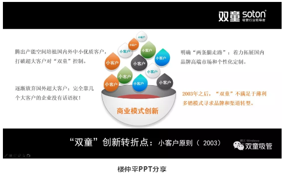 十多年前,當別的企業(yè)都忙著擴大生產(chǎn)規(guī)模時,“雙童”卻反其道而行之。2003年,我們提出了“小客戶原則”,前后花了5年時間“砍掉”了那些對“雙童”沒有正向價值的大客戶,因為這樣的客戶會導(dǎo)致企業(yè)沒有任何自主權(quán)和定價權(quán),無法形成良性循環(huán)。
