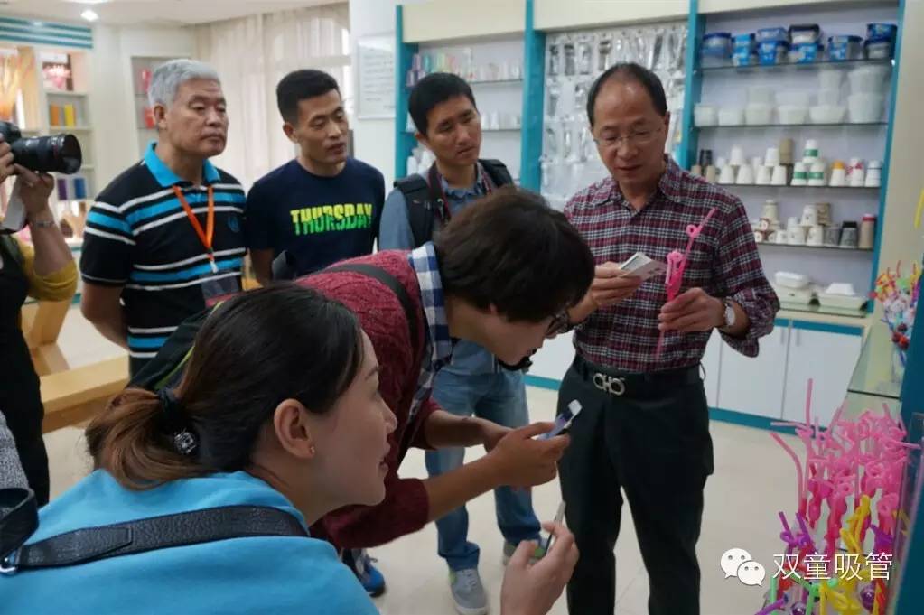 接著,網(wǎng)絡(luò)媒體團(tuán)的一行眾人先是來到了位于綜合樓二樓的創(chuàng)新吸管樣品室,由樓總向眾人介紹我們的一系列創(chuàng)新吸管產(chǎn)品。一款款創(chuàng)意十足、富有童真的創(chuàng)新吸管引起了大家的強(qiáng)烈關(guān)注,尤其是幾位女記者們,簡直是愛不釋手!而當(dāng)看到我們的可降解吸管時,則紛紛點(diǎn)頭贊許雙童的環(huán)保理念。